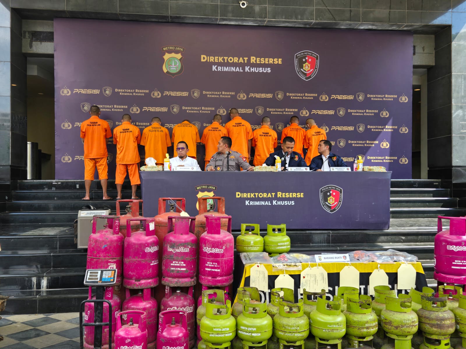 “Para pelaku memindahkan isi gas elpiji ukuran 3 kg (subsidi) ke tabung gas elpiji kosong ukuran 12 kg dan 50 kg (non-subsidi),” ujar Wadirreskrimsus dalam konferensi pers, Kamis (13/2/2025).