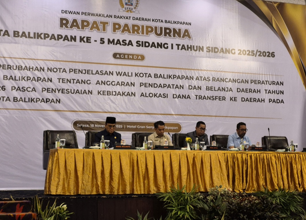 BALIKPAPAN, Seputarkata.com — Dewan Perwakilan Rakyat Daerah (DPRD) Kota Balikpapan menggelar Rapat Paripurna pada Selasa, 18 November 2025, di Grand Sinyur Hotel dengan agenda penyampaian Perubahan Nota Penjelasan Wali Kota Balikpapan atas Rancangan Peraturan Daerah (Raperda) tentang APBD Tahun Anggaran 2026.